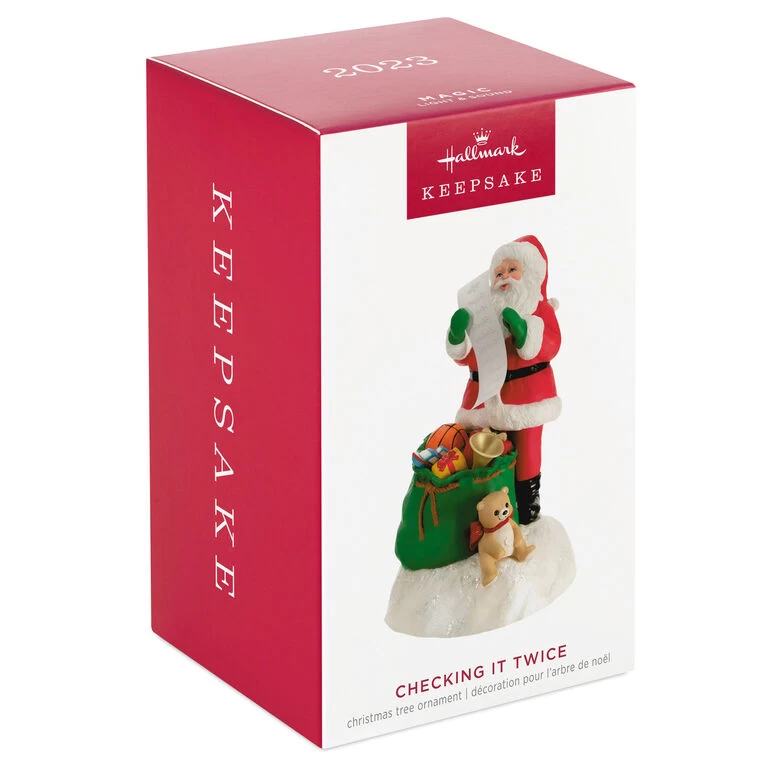 - Key Features: Press the button on the Magic Light and Sound ornament to see it illuminate and hear Santa checking his list.