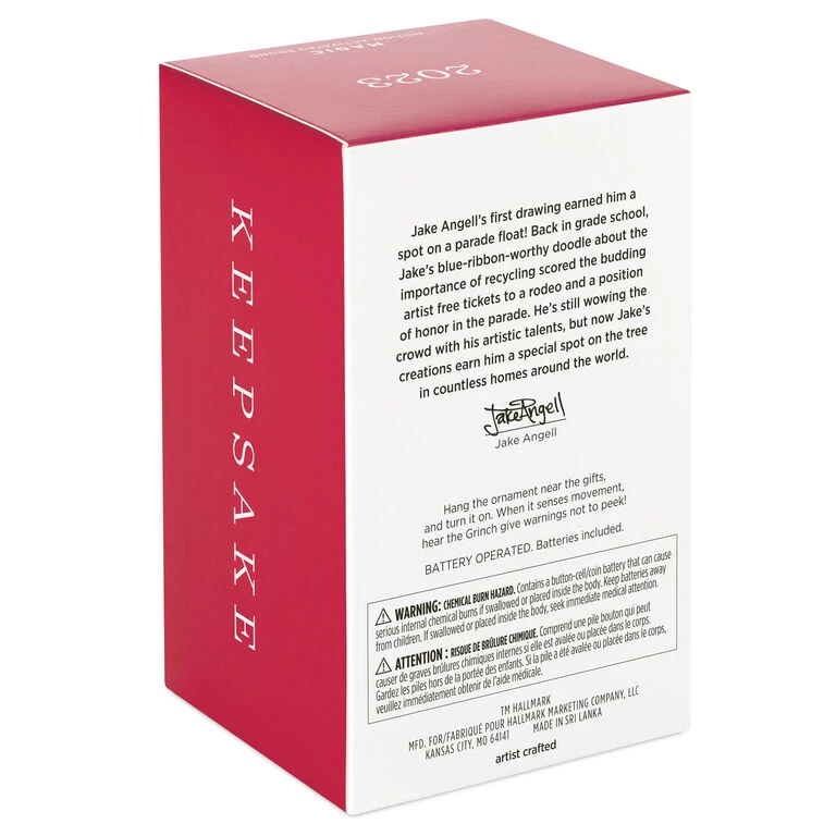 - Key Features: Hang the Magic Motion-Activated Sound ornament near the gifts and turn it on. When it senses movement, hear the Grinch give warnings not to peek.