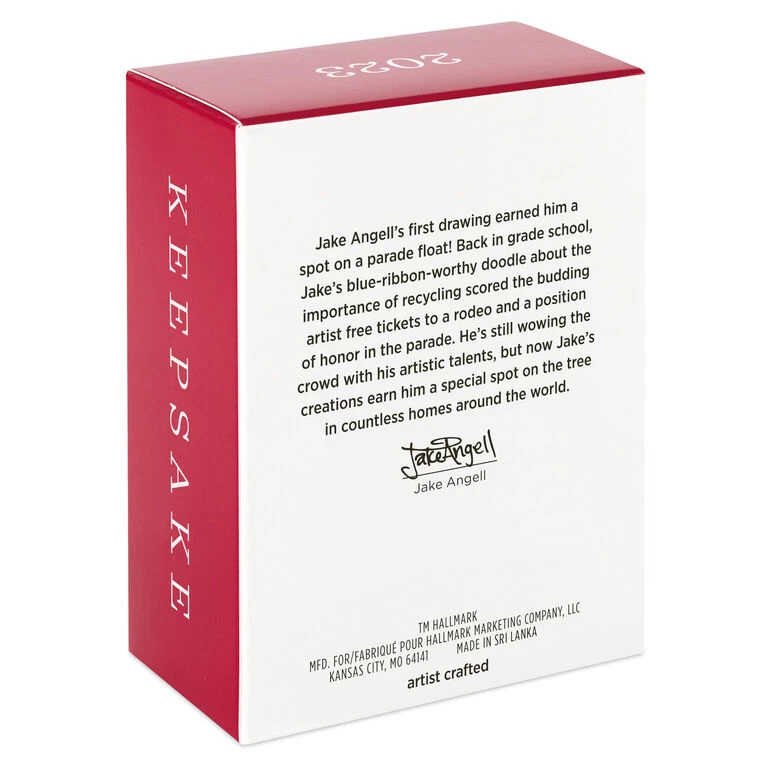 - Additional Details: Artist crafted by Jake Angell. Plastic Christmas tree ornament.