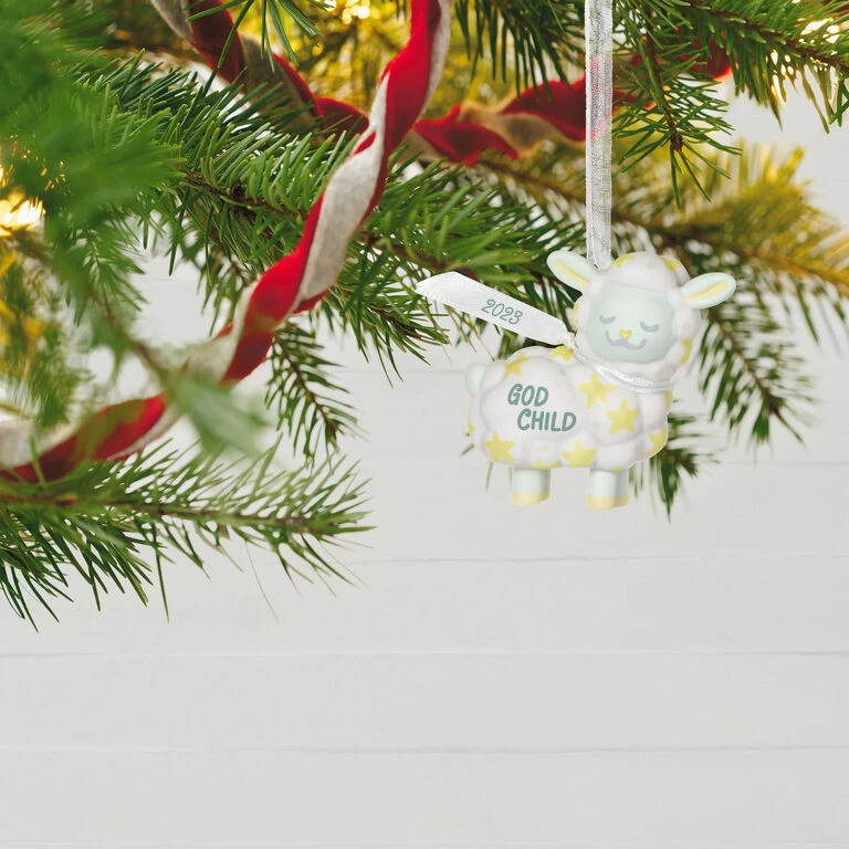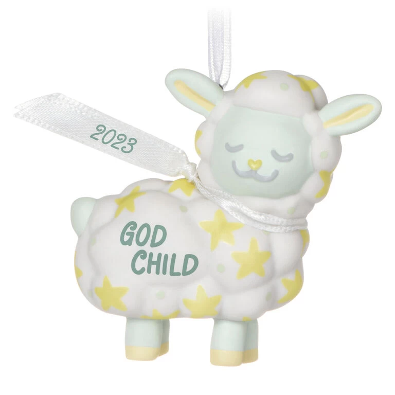Remind a godchild of their special place in your life with this porcelain Christmas tree ornament. With a gold star pattern on its body and a 2023 year-dated ribbon scarf around its neck, this little lamb is sure to bring a smile to your godchild’s face when they display it on the tree this year and for years to come.
