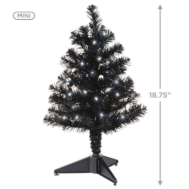 - Key Features: Black miniature pre-lit Christmas tree has battery-operated LED lights.
