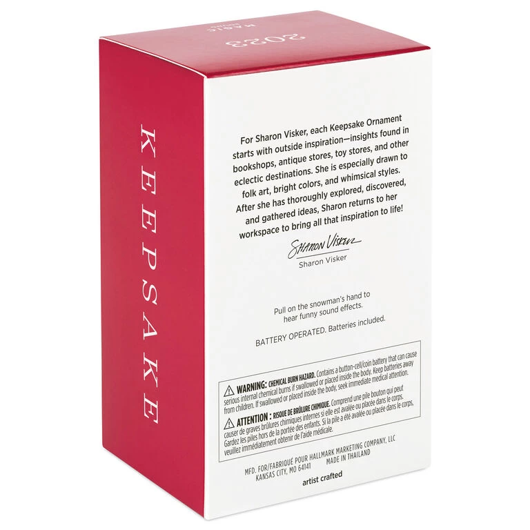 - Key Features: Pull the snowman’s hand on this Magic Sound ornament to hear funny sound effects.