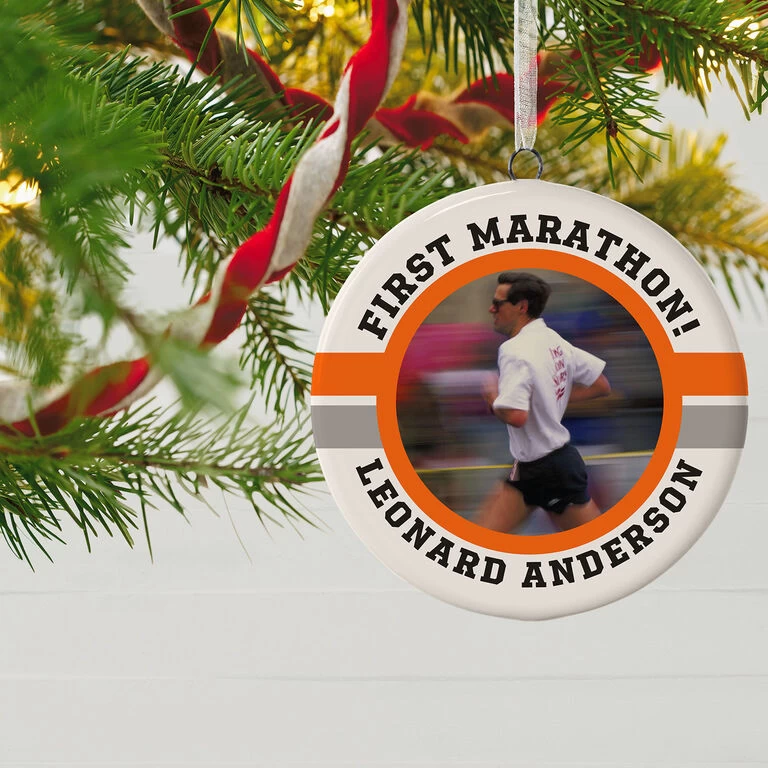 - Plastic personalized Christmas tree ornament is lead-free and measures 3.75″ W x 3.75″ H x 0.25″ D.
